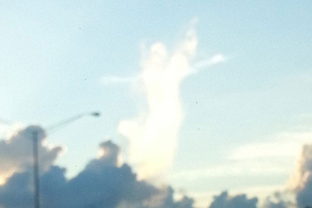 Cô Andrea phát hiện đám mây kỳ lạ lúc 7h sáng khi đang lái xe đi làm trên đoạn đường cao tốc ở Florida, Mỹ. "Tôi nhìn thấy cảnh tượng tuyệt đẹp về một thiên thần đang nhìn theo chúng tôi", Andrea nói.