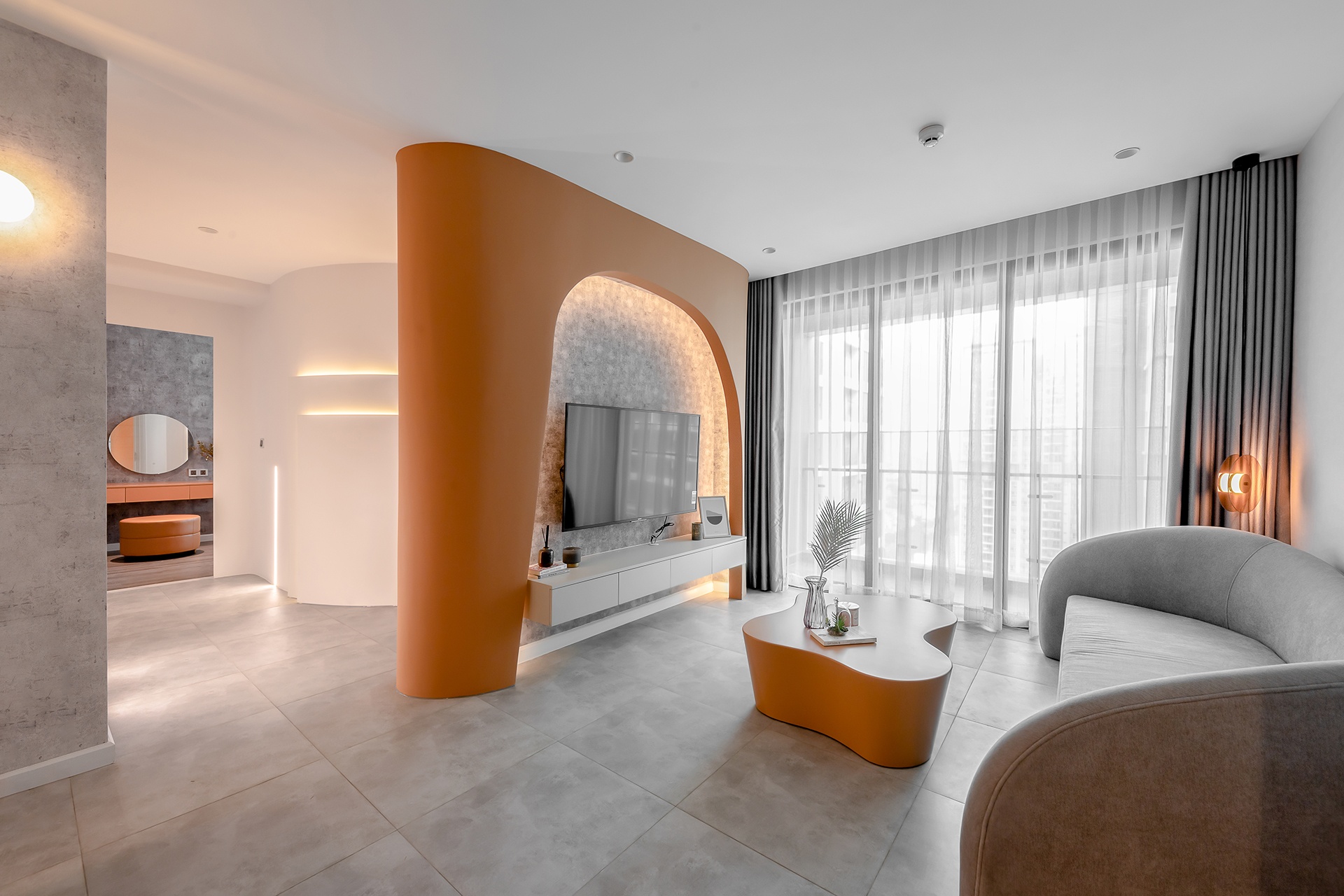Nhờ ý tưởng hẻm núi Grand Canyon độc đáo, đi cùng những đường cong mềm mại và màu cam đất nổi bật, nữ chủ nhân đã có một không gian sống độc đáo, nổi bật nhưng vẫn ấm cúng như mong muốn.