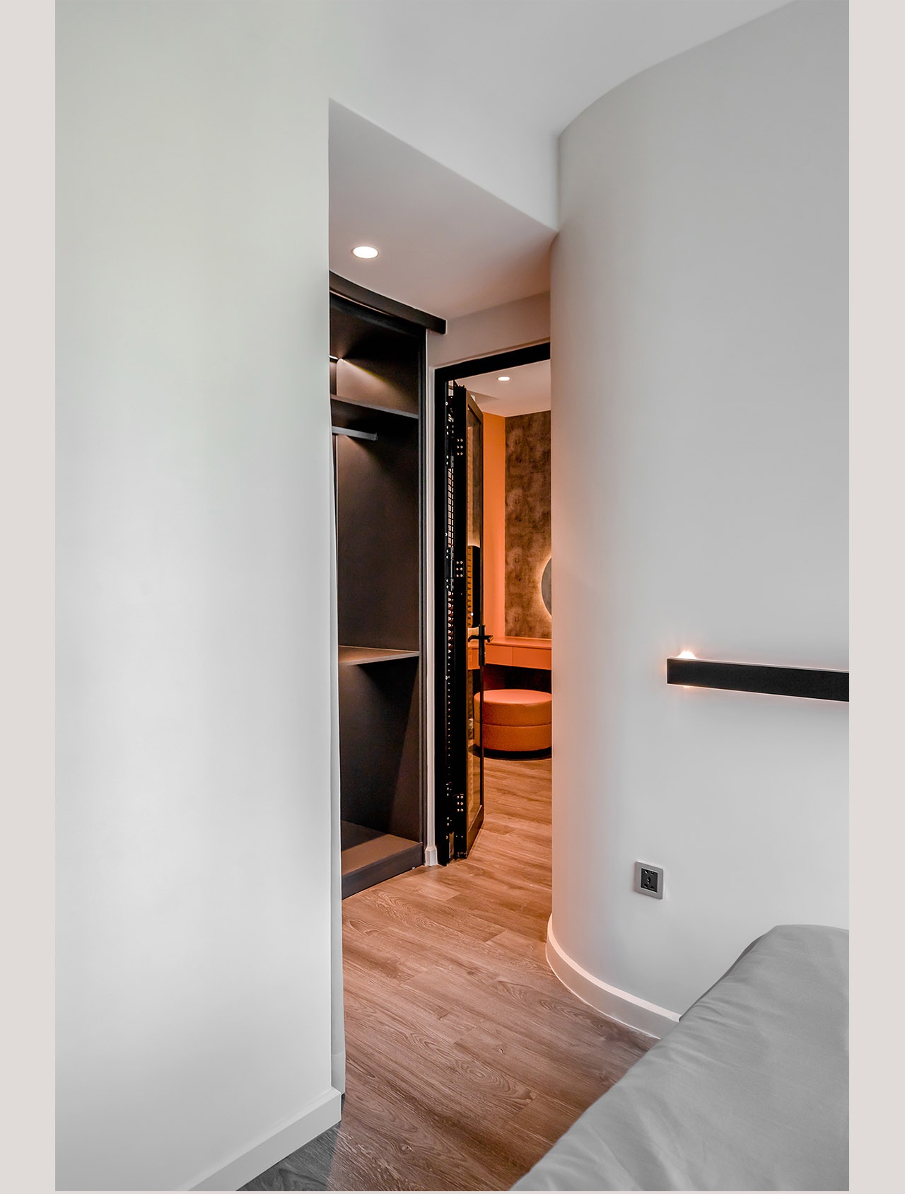 Phòng thay đồ được kết hợp cùng phòng ngủ nhỏ với lối đi thông qua phòng ngủ chính đã làm tăng cảm giác rộng rãi nhưng vẫn đảm bảo được công năng của căn hộ.