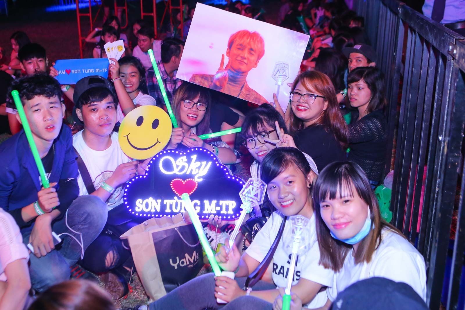 | Các fan của Sơn Tùng M-TP có mặt tại SVĐ Phú Thọ từ rất sớm. Họ chuẩn bị các khung hình, sticker một cách kỹ lưỡng để cổ vũ thần tượng. |