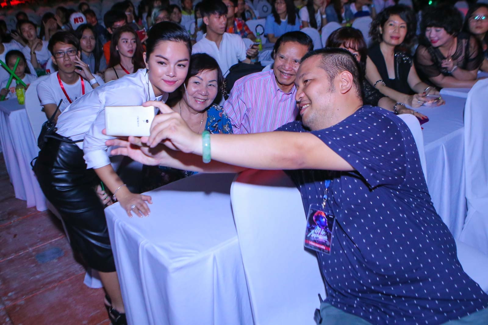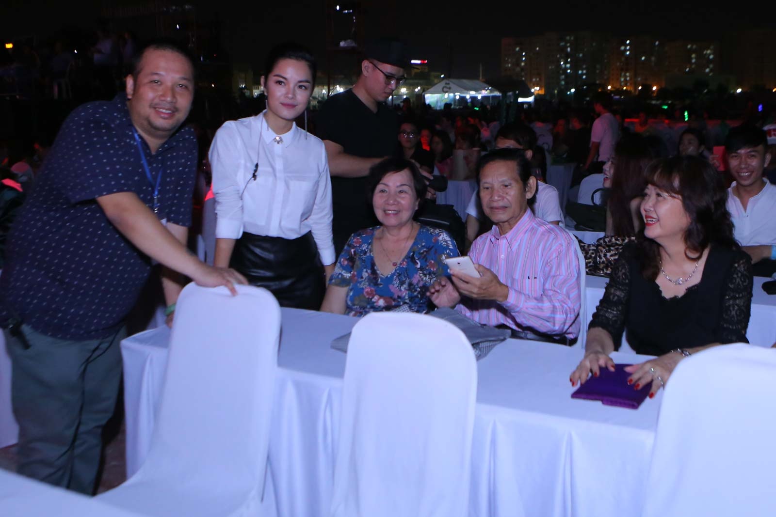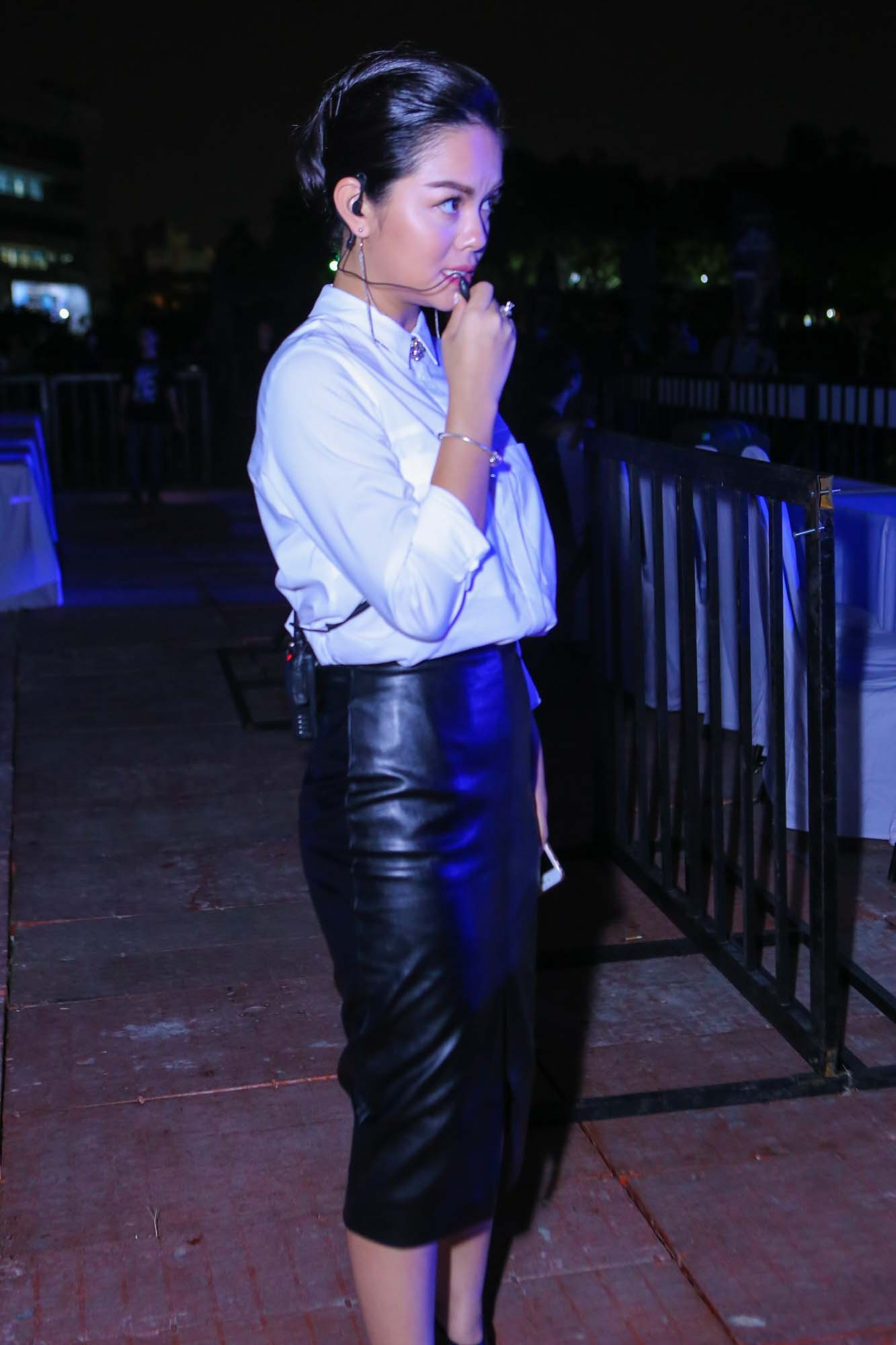 | Trong đêm nhạc M-TP Ambition - Chuyến bay đầu tiên, Phạm Quỳnh Anh là trợ lý đắc lực của ông xã, đạo diễn Quang Huy. Cô có mặt ở SVĐ Phú Thọ - TP HCM từ khá sớm và tất bật lo lắng mọi công việc để đêm nhạc của gà cưng chỉn chu, ấn tượng. |