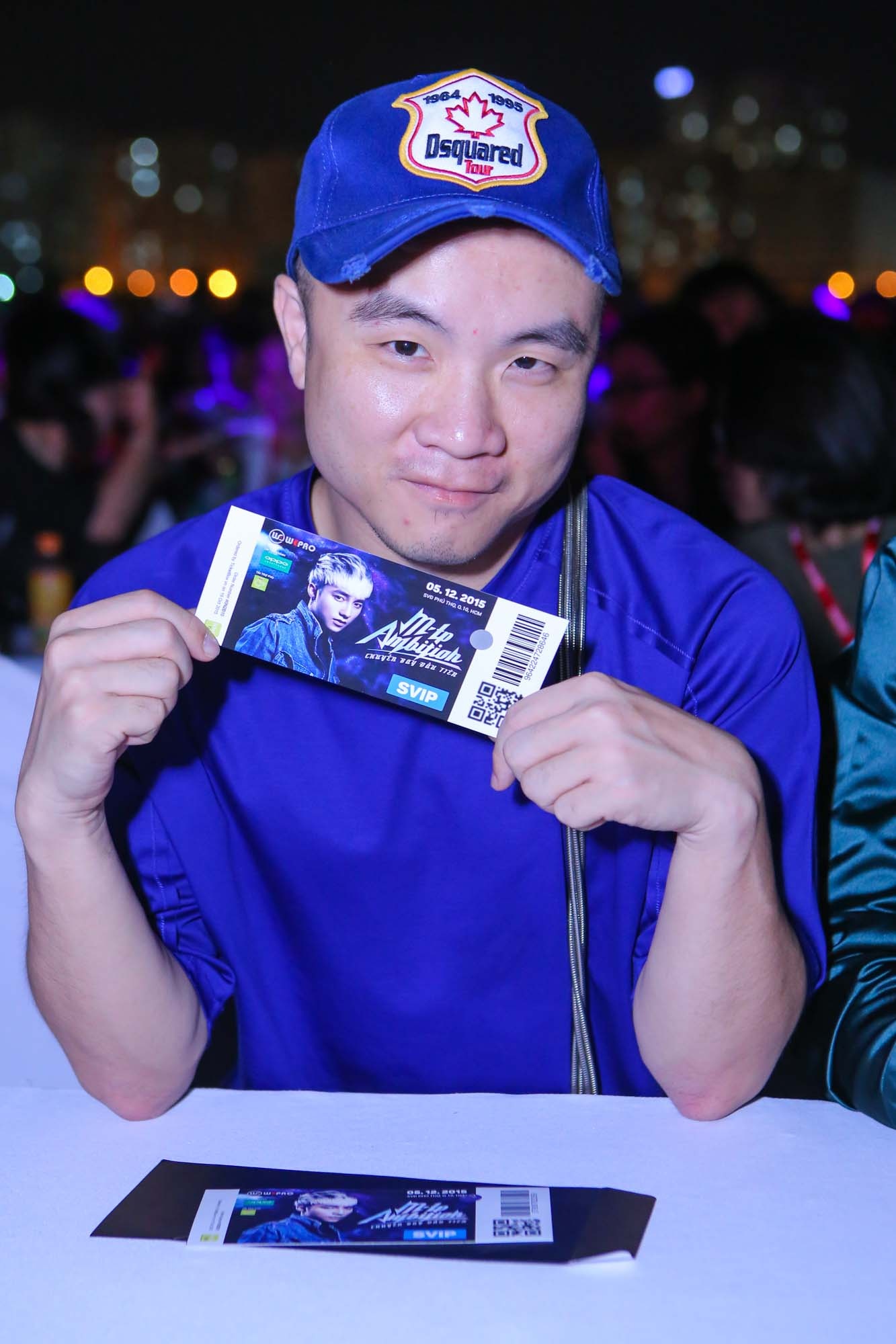 | NTK Đỗ Mạnh Cường khoe tấm vé mời tham gia live show. |