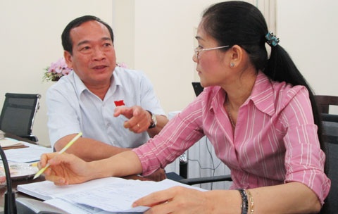 | Trưởng ban Văn hóa xã hội HĐND TP.HCM Huỳnh Công Hùng trao đổi với Phó giám đốc Sở GD-ĐT Trần Thị Kim Thanh về giáo dục mầm non bên lề buổi làm việc. Ảnh: Tá Lâm. |