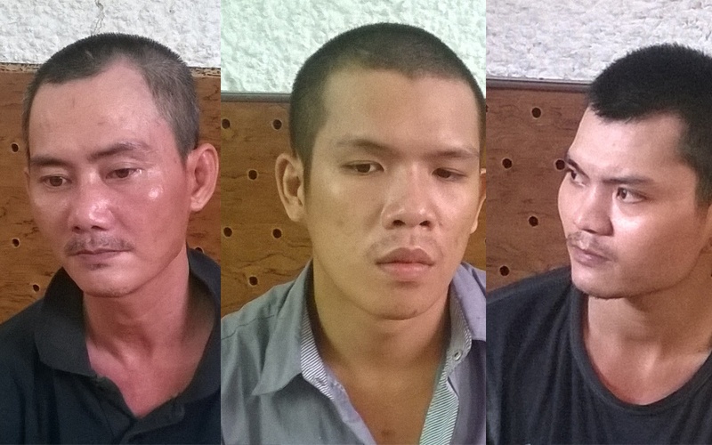 | Hải, Luân và Hồ tại cơ quan công an. |