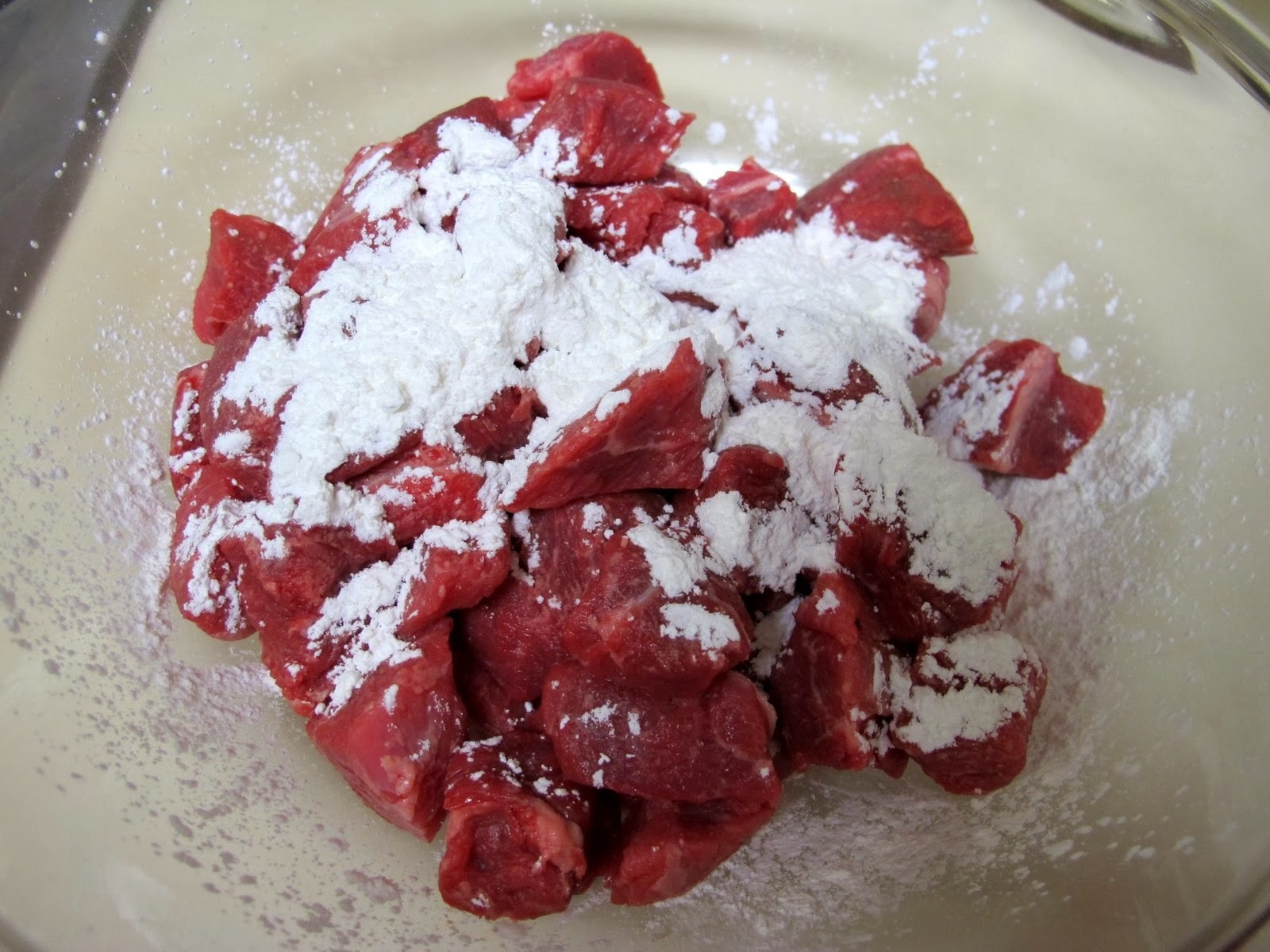 Trộn thịt bò cùng tinh bột ngô. Ảnh: Ibelieveicanfry. |