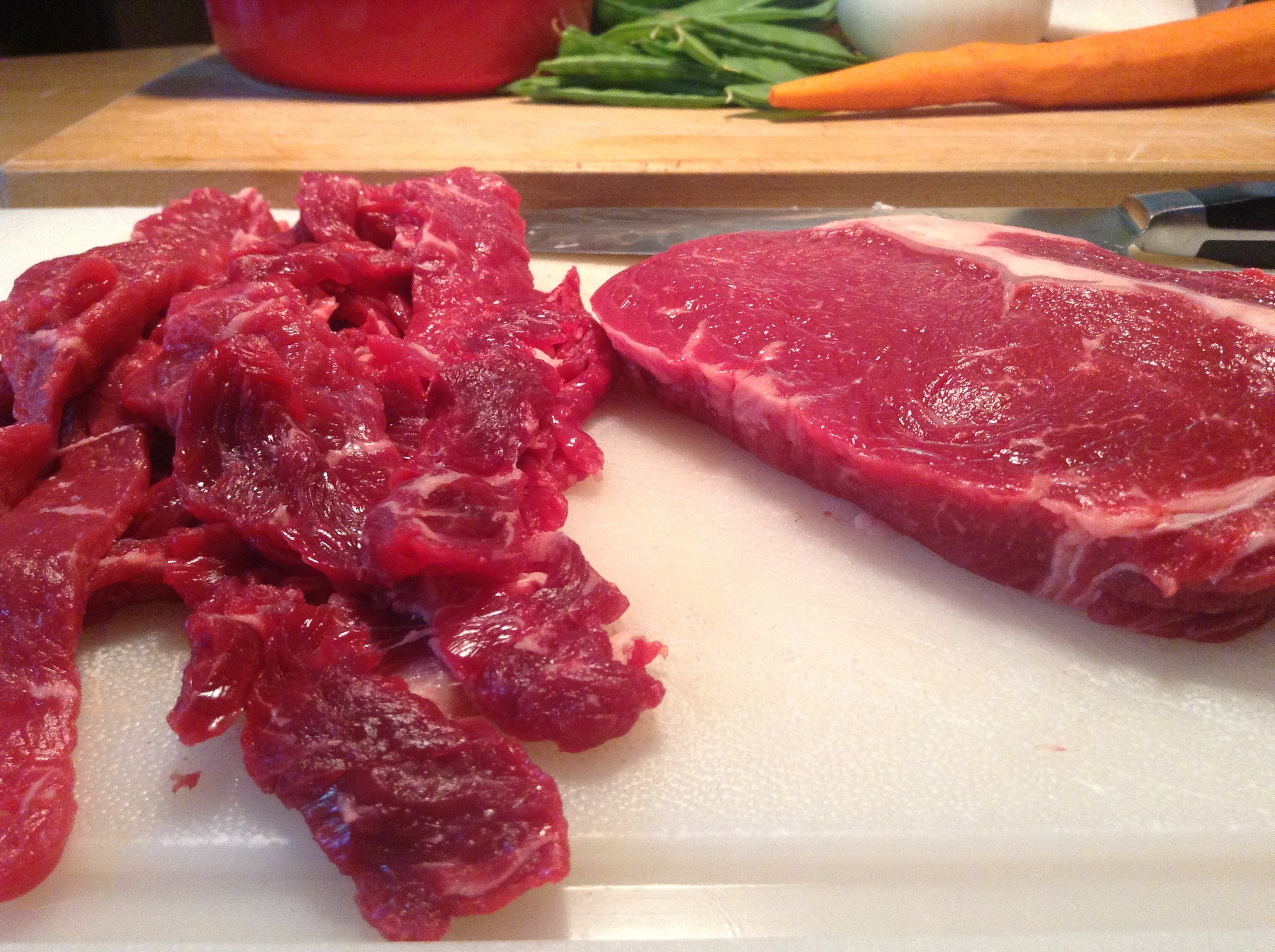 Thịt bò thái mỏng thành những miếng nhỏ. Ảnh: Ohlidia. |