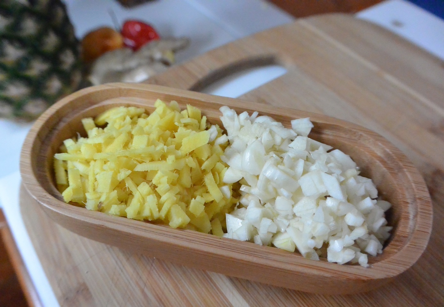 Băm nhỏ tỏi và gừng. Phi tỏi và gừng trong chảo (hoặc nồi) bằng dầu ăn khoảng 1 phút. Ảnh: Galleypirate. |