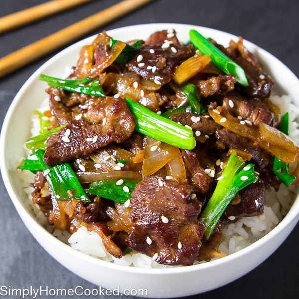 Nguyên liệu: Thịt bò, d ầu thực vật, gừng, tỏi, hành lá, hành tây, t inh bột ngô, nước tương (xì dầu), đường nâu, nước lọc . Ảnh: Simply Home Cooked. |