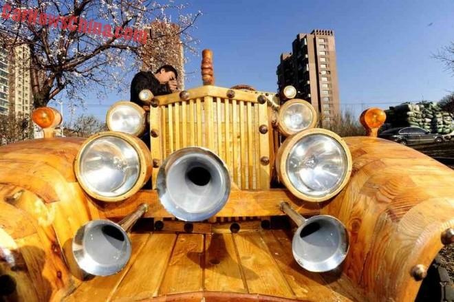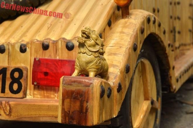 Các công tắc trên xe, tay lái, đèn pha đều làm bằng gỗ và hoạt động tốt. Một con kỳ lân được điêu khắc cẩn thận gắn trên chắn bùn trước, đây là biểu tượng truyền thống của người Trung Quốc. Ông hy vọng, sẽ có nhiều người đặt hàng chiếc xe này để mở rộng sản xuất.