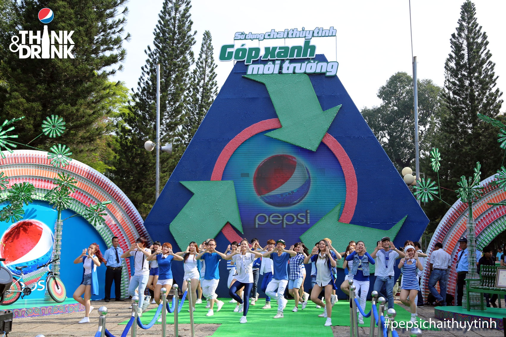 Và để giúp các bạn trẻ nâng cao ý thức bảo vệ môi trường, Pepsi đã ra mắt sự kiện Think& Drink - Uống chai sành điệu, góp xanh môi trường với thông điệp đơn giản mà đầy ý nghĩa: “Muốn góp xanh cho môi trường, hãy bắt đầu bằng thói quen uống Pepsi trong chai thủy tinh”. Chương trình có nhiều hoạt động thú vị, đặc biệt là mô hình tái chế khổng lồ.