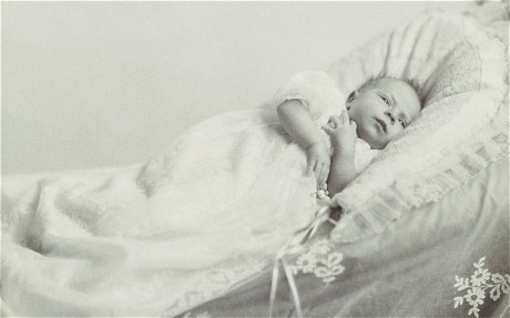 Bức ảnh đầu tiên về Nữ hoàng Elizabeth khi bà mới chỉ vài tuần tuổi. Đây là một trong số những bức ảnh mà Hoàng gia Anh công bố nhân dịp tiểu hoàng tử George – con trai Hoàng tử William và công nương Kate - chào đời.