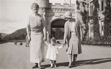 | Những bước đi đầu đời của đương kim nữ hoàng Anh bên mẹ và bà - nữ hoàng Mary. |