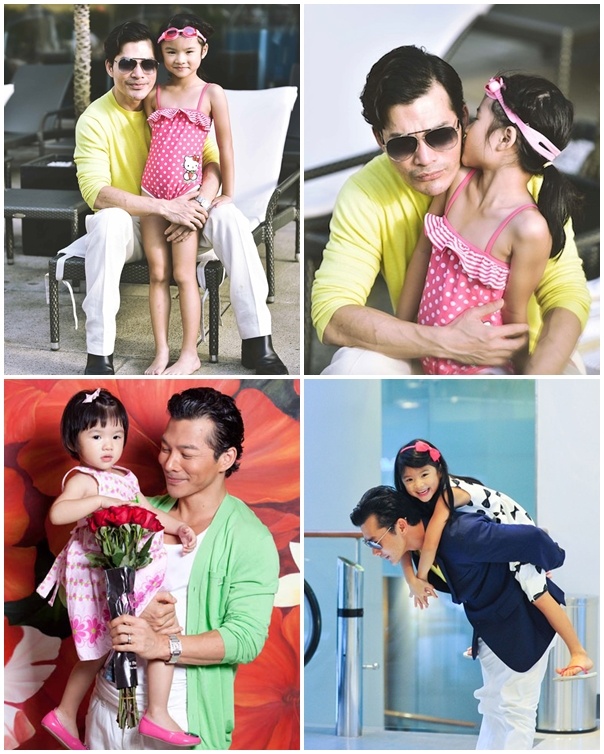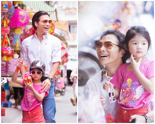 Trần Bảo Sơn - con gái Bảo Tiên: Những lúc ở cạnh con gái Bảo Tiên, ông bố lịch lãm Trần Bảo Sơn thường chọn trang phục thoải mái, phóng khoáng để tiện đưa đón, tháp tùng công chúa nhỏ. Thậm chí, nam diễn viên - doanh nhân còn không ngần ngại cõng "thiên thần nhỏ" dù đang diện vest sành điệu.