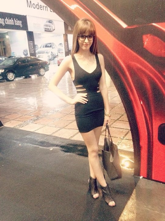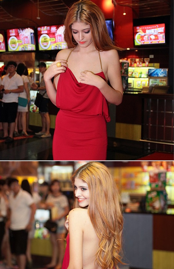 | Cô gái trẻ trong mẫu đầm siêu ngắn và khoét lưng hết cỡ. |