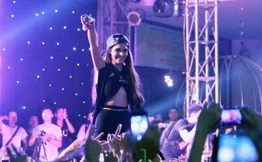 | Cô chứng tỏ độ nóng với phần ngực khoét xéo khi trình diễn trên sân khấu. |