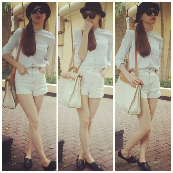 | Được xem là một trong những ngôi sao nữ sành điệu nhất showbiz Việt nên Hồ Ngọc Hà không bao giờ khiến mọi người phải phàn nàn về cách ăn mặc. Quần short trắng, sơ mi trắng giày đế bệt và kính, mũ, túi xách là sự kết hợp tuyệt đẹp cho vóc dáng. |