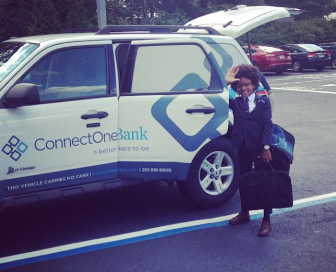 | Cậu còn thường xuyên đăng tải ảnh liên quan đến công việc. Trong hình là lúc Cory đang đến ngân hàng để bàn bạc về việc liên kết làm ăn. |