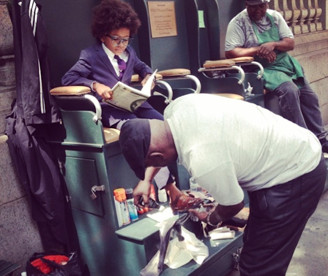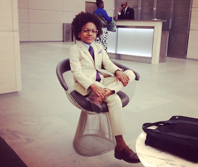 | Dù mới 9 tuổi nhưng cậu bé đã có phong cách thời trang như các doanh nhân thành đạt thực thụ. |