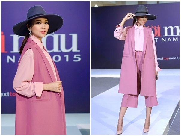 | Phong cách thanh lịch, cá tính được siêu mẫu lăng xê nhiệt tình khi xuất hiện tại các vòng thi khu vực phía Bắc. Trong ảnh, giám khảo diện mốt suits "cây hồng", các sắc độ tối sáng phối hợp ăn nhập. |