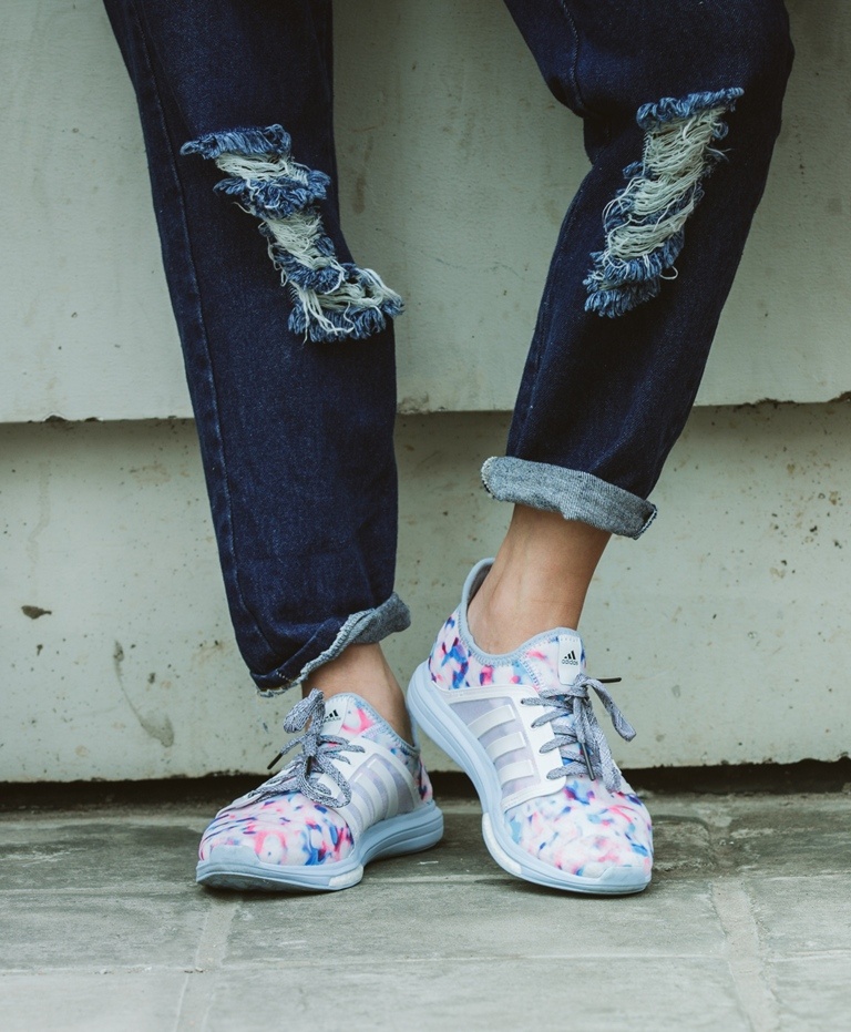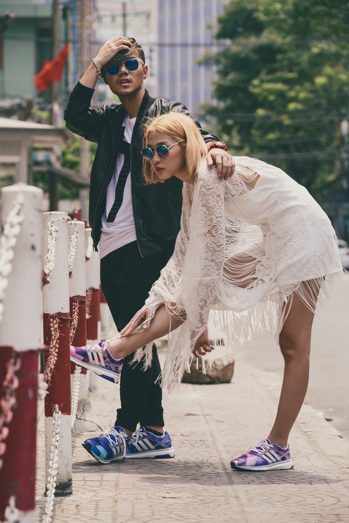 | Phong cách phối đồ mới lạ với Energy Boost, Sonic Boost cùng crop-top và áo khoác tua rua. |