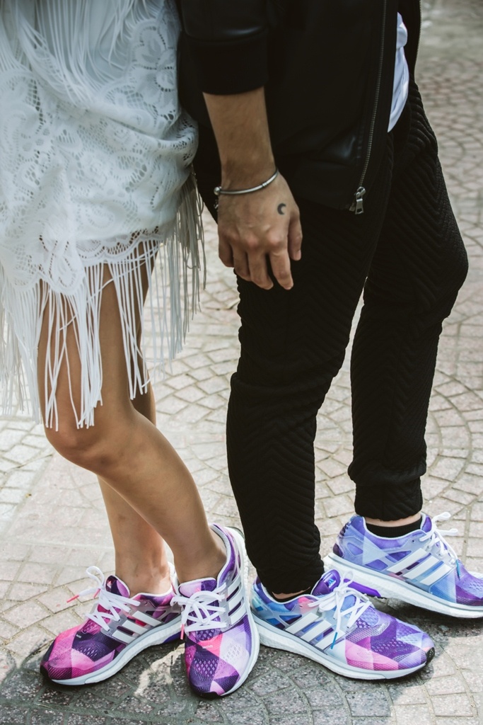 | Những cặp đôi muốn thể hiện sự mạnh mẽ và chuộng phong cách thể thao xuất hiện ấn tượng ngay cả khi chỉ diện sneakers, áo phông và quần thun hoặc jeans trơn. |