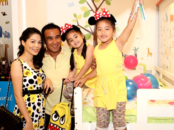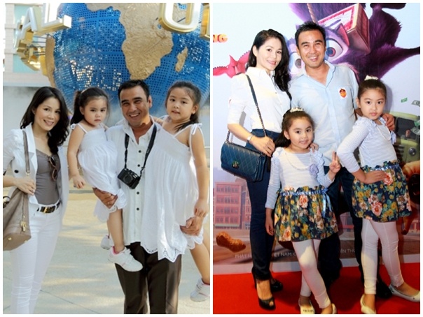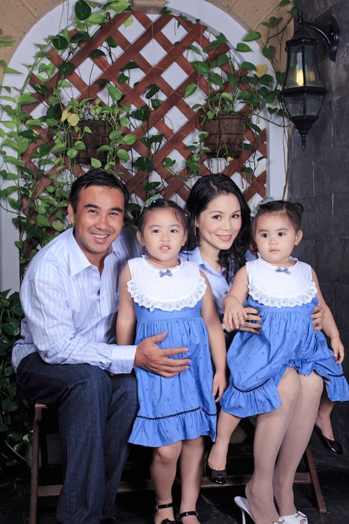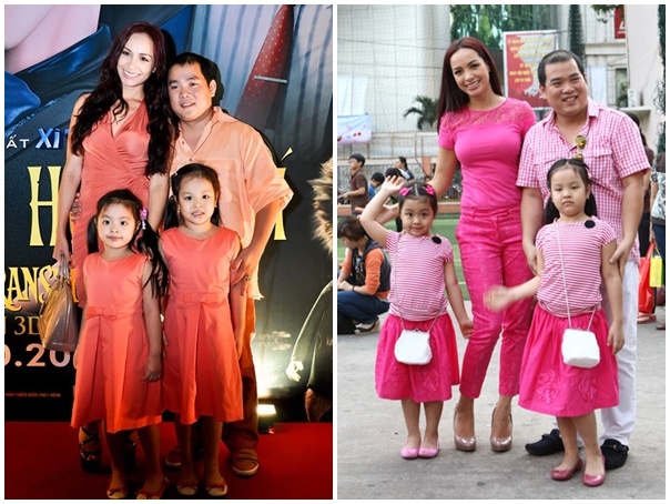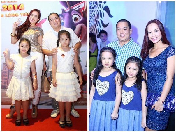 | Không kém cạnh gia đình cựu siêu mẫu - nhạc sĩ, Quyền Linh cùng vợ và các con chuộng những bộ cánh tiệp màu đẹp mắt. Hai cô nhóc Lọ Lem và Hạt Dẻ thường được mẹ trang bị những bộ váy dễ thương, năng động. Bố mẹ của hai nhóc tì cũng rất hợp tông khi đưa hai thiên thần đi sự kiện. |