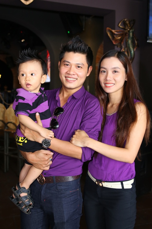| Gia đình nhạc sĩ Nguyễn Văn Chung cũng chuộng mốt thời trang ton-sur-ton khi cùng đồng hành. Trong ảnh, ba thành viên gia đình nhạc sĩ bản hit Mùa đông không lạnh cùng diện gam tím bắt ánh nhìn. |