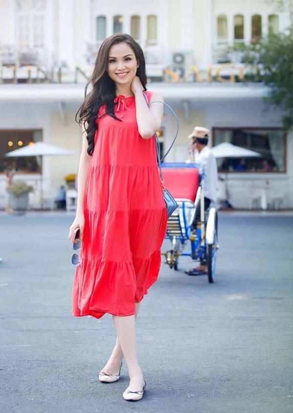 | Một lựa chọn khôn khéo với đầm suông maxi của Diễm Hương. |