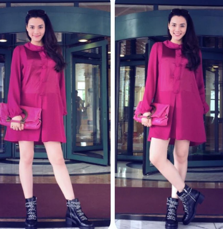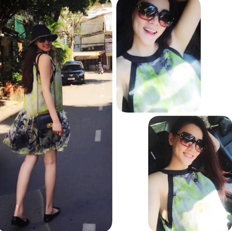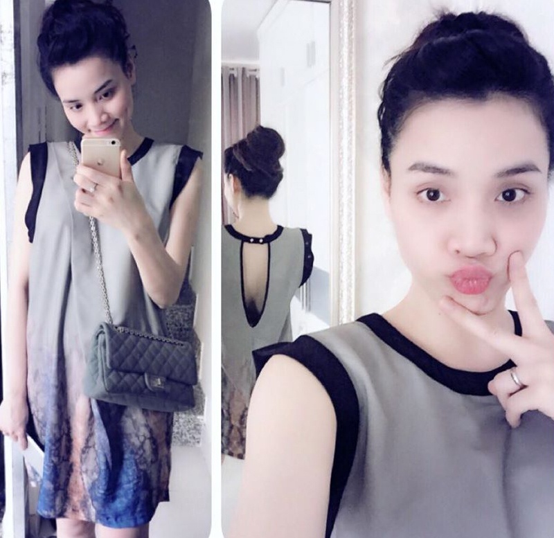 | Thời trang ngày thường của Hà Tăng cũng là những mẫu đầm suông giấu bụng rất khéo léo. |