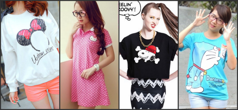 Trào lưu hoạt hình đã xuất hiện trong nhiều năm nay, nhưng thời gian gần đây lại bắt đầu rục rịch đổ bộ với một cuộc càn quét lớn hơn. Áo phông, sơ mi, sweater hay dịu dàng hơn với váy, đầm, áo voan... đều xuất hiện hình ảnh của các nhân vật hoạt hình, mang lại sự trẻ trung, nhí nhảnh cho người mặc nhưng không hề khiến cho bạn trông quá trẻ con.