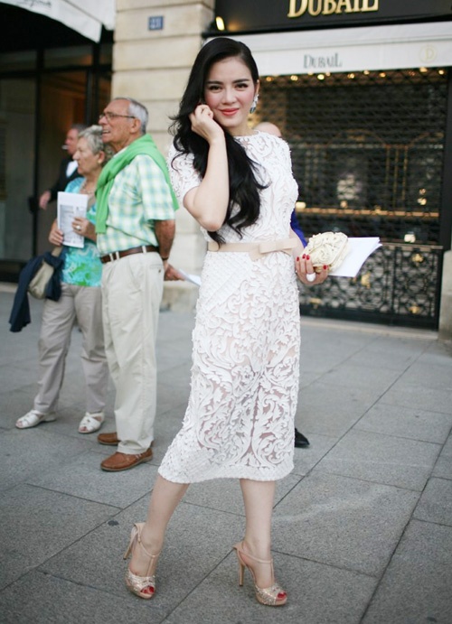 | Đầm ren trắng thường xuyên được Lý Nhã Kỳ sử dụng để tông thêm vẻ duyên dáng. |