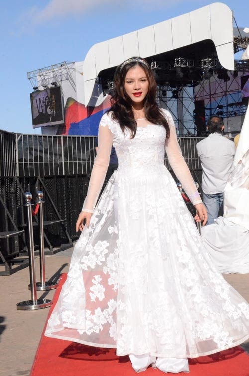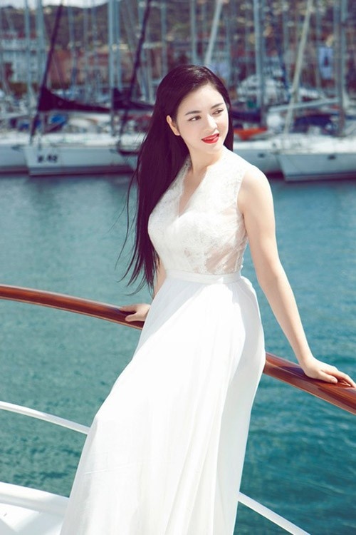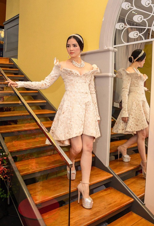 | Có lúc cô lại mang đến hình ảnh rất nền nã với tà áo dài kết ren bắt mắt. Ảnh Ngoisao.net |