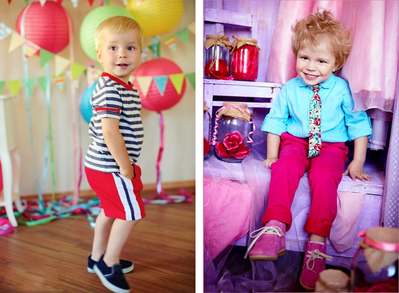 | Bí quyết kết hợp color block của mẹ Cyril rất đơn giản: màu pastel đi với gam màu đậm nhạt tạo nên những bộ trang phục mát dịu, xinh xắn cho nhóc tỳ của mình. |