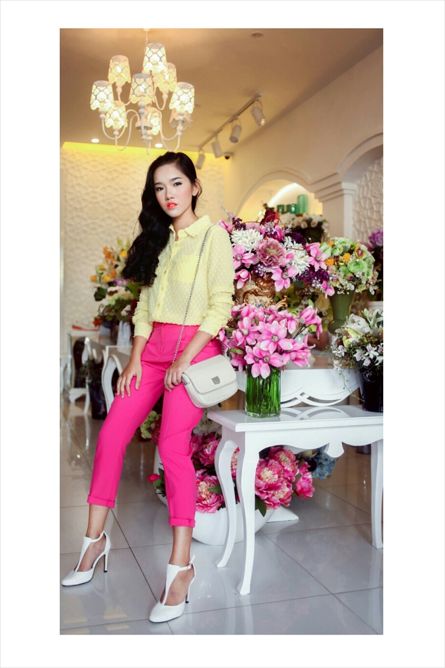 | Áo sơ mi gam vàng và quần âu tông hồng kết hợp ăn ý mang đến vẻ đẹp sành điệu, dành cho các cô gái thành thị. |