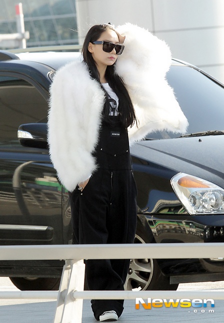 | Việc kết hợp thứ đồ sang trọng với đời thường như áo lông và quần yếm rộng đem lại cho CL vẻ ngoài khá lạ lẫm. |