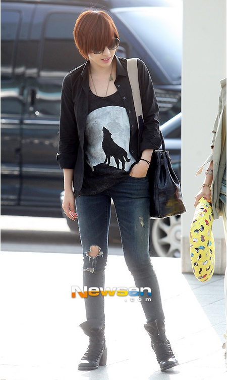 | Áo jean, quần rách, kính với kiểu dáng khác lạ, ba lô "xì tin" là những điều có thể dễ dàng nhận ra ở Eun Jung. |