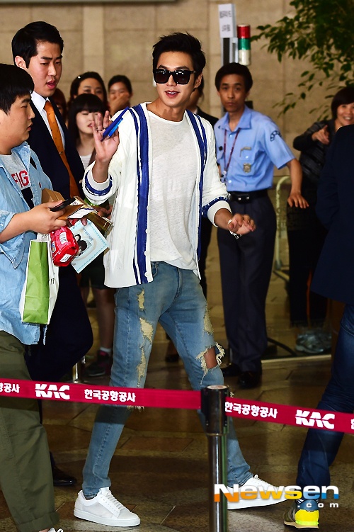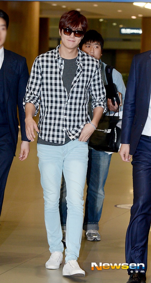 | Hiếm khi Lee Min Ho xuất hiện ở sân bay mà thiếu đi cặp kính đen. |