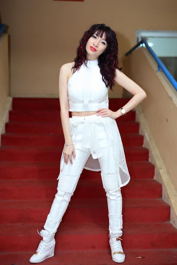 | Cây đồ trắng rất cá tính của Pha Lê. |