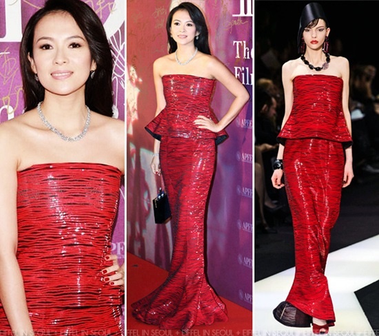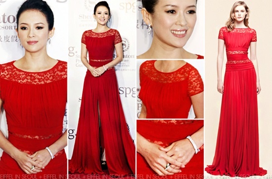 | Chương Tử Di cũng là một fan trung thành của Elie Saab khi thường xuyên lựa chọn sản phẩm của thương hiệu này để mặc trên thảm đỏ. Bộ váy đỏ với đường xẻ phía trước đã giúp cô trở thành tâm điểm của mọi ánh nhìn. |