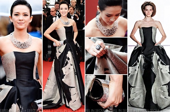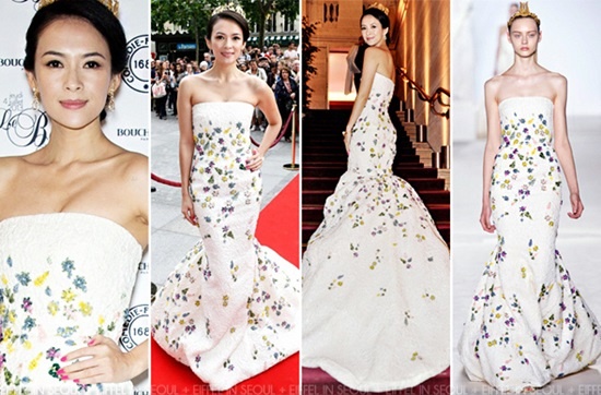 | Không chỉ khéo léo trong việc lựa chọn trang phục, Chương Tử Di còn cho thấy gu thời trang tinh tế của mình thông qua những món đồ phụ kiện đắt giá. Trong ảnh, cô mặc chiếc váy của thương hiệu Carolina Herrera, kết hợp cùng trang sức của Chanel và clutch của Jimmy Choo. |