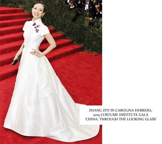 | Đơn giản những không kém phần sang trọng với chiếc váy của Carolina Herrera, được lấy cảm hứng từ bộ trang phục truyền thống sườn xám Trung Hoa. |