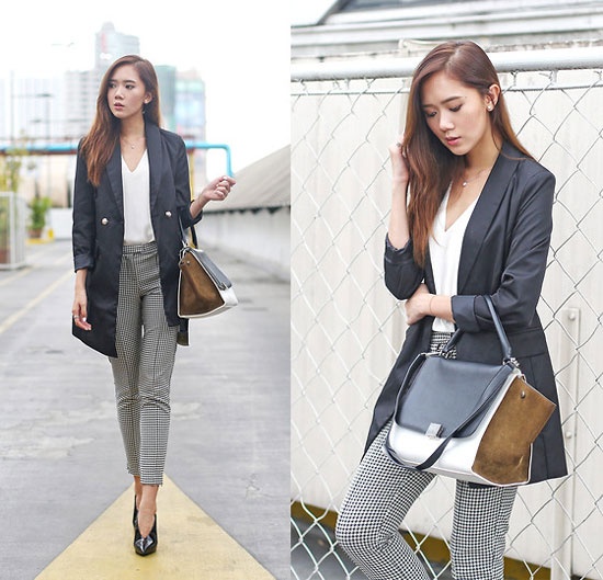 | Với áo blazer, bạn có thể chọn cách phối cùng quần tây, quần short, váy liền thân bên trong....theo cách của Camille Co. Ngoài ra, đừng quên kết hợp thêm những chiếc túi xách to bản, ví cầm tay hoặc túi mini sành điệu. |