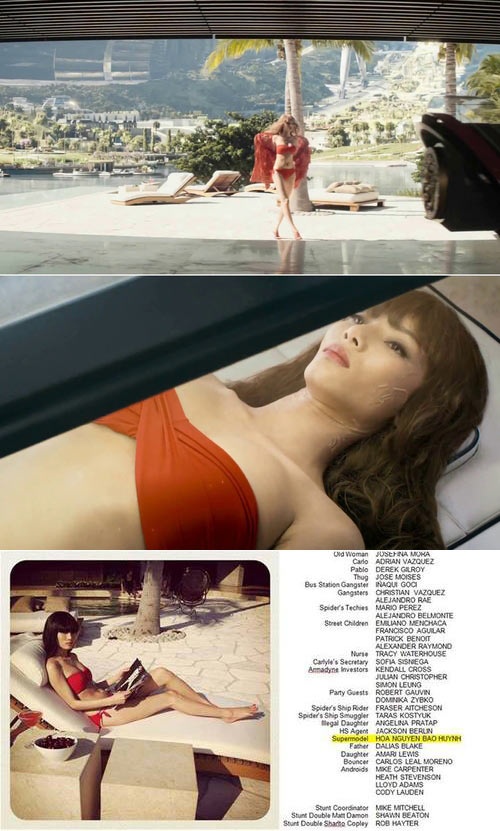 Bảo Hòa đã làm nức lòng người hâm mộ khi xuất hiện cùng dàn diễn viên nổi tiếng của Hollywood trong bộ phim bom tấn Elysium (Thiên đường) vào năm 2013. |