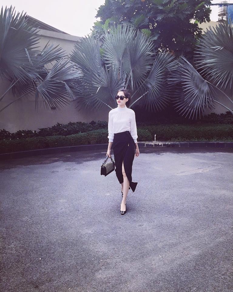 | Những hình ảnh mới nhất của Thu Thảo cho thấy cô đang phải lòng xu hướng thời trang thanh lịch với hai tông màu đen trắng cơ bản. |