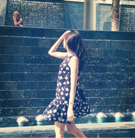 | Phút thư giãn của người đẹp với váy midi đen dịu dàng. |