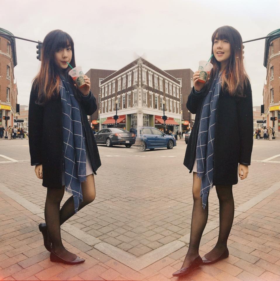 Mie Nguyễn diện váy ngắn, áo khoác dạ và khăn quàng mỏng xuống phố. Nếu kết hợp cùng boot cổ ngắn cô nàng sẽ phong cách hơn là chọn giày bệt.