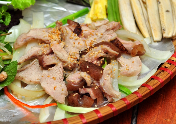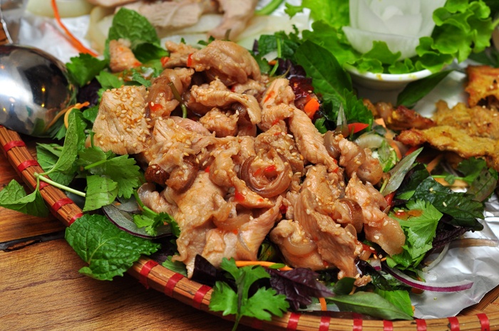 Để cảm nhận độ mềm thơm tuyệt vời của bò tơ thì bạn phải khai vị bằng gỏi tái chanh. Miếng thịt cả phần nạc lẫn phần bì đều mềm như nhau. Ai muốn nhẩn nha thì cuốn cùng bánh đa với lá thơm, người ăn cấp tập thì cứ thể mà chấm mắm nêm. Dù thưởng thức cách nào khách cũng thấy ngon và “kết” ngay từ miếng đầu tiên.