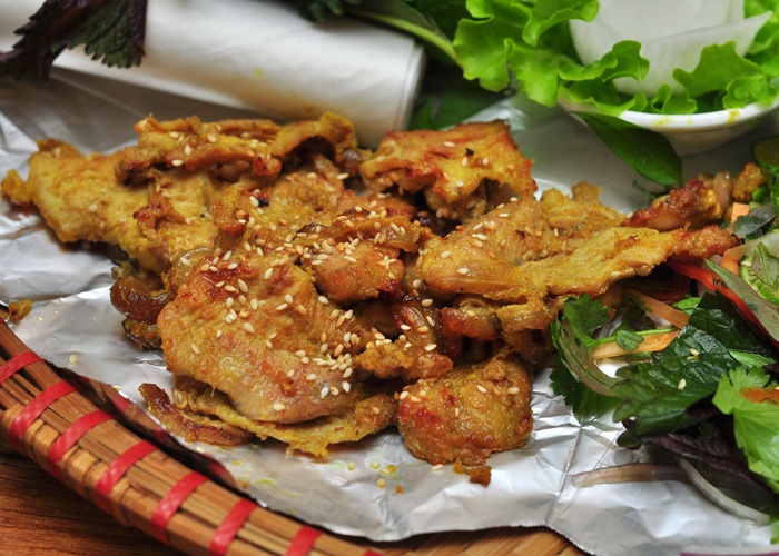 Bò tơ nướng giềng mẻ, hay bò tơ hấp mía càng thơm “quyến rũ” khi được bổ sung thêm các loại gia giảm. Người sợ béo thì chấm điểm cho món bò nướng bởi món này chỉ chọn phần thịt nạc rồi nướng than hoa cháy cạnh. Nạc nhưng không bao giờ bã là ưu điểm của món. Ngược lại, béo ngậy hơn là bò hấp, song dù có chút dải mỡ thì mỡ bò tơ cũng không hề dai và ngán.