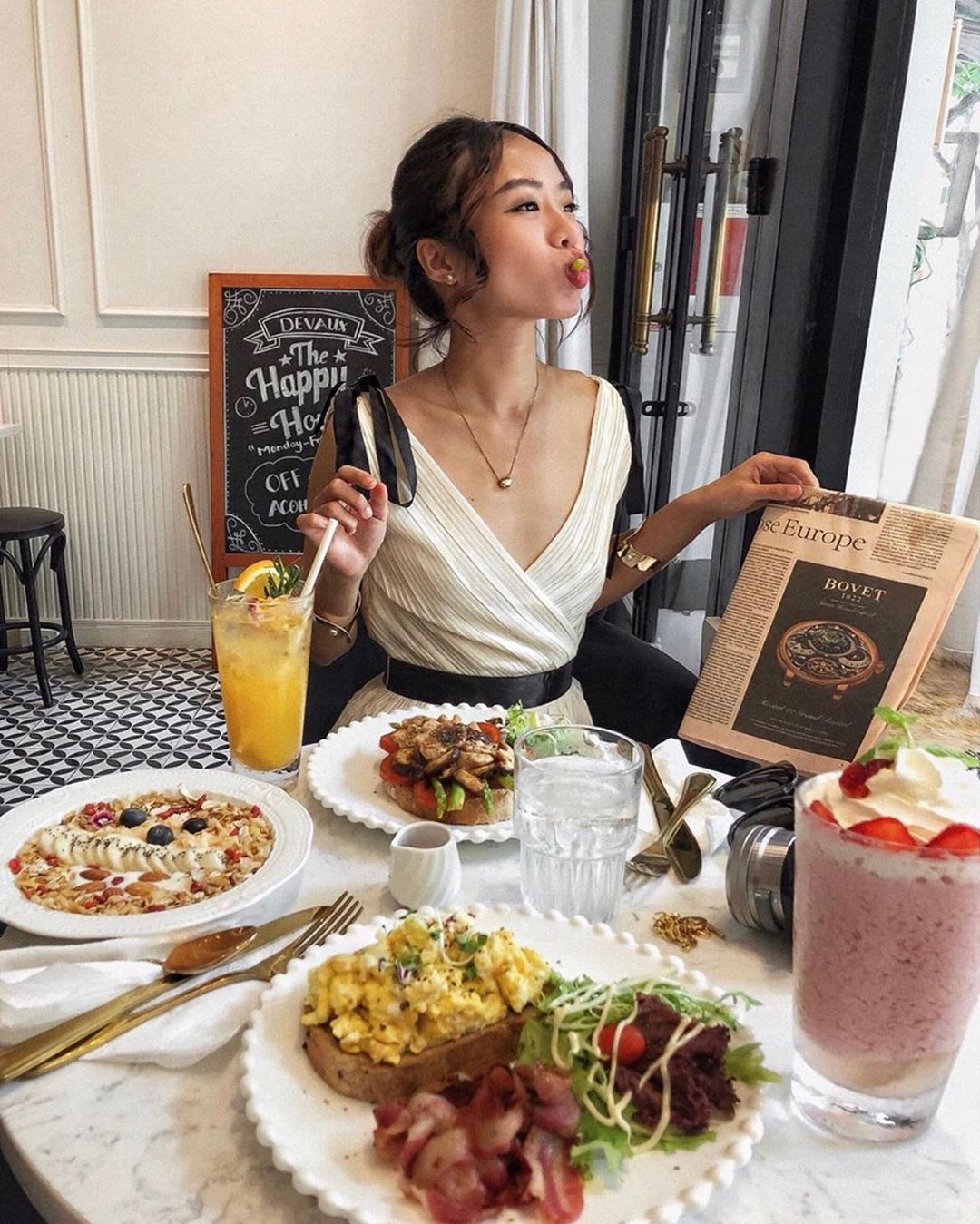Devaux Beverages: Là một trong những địa điểm hay lui tới của giới trẻ Sài thành, Devaux Beverages có không gian sang trọng với màu trắng, xanh chủ đạo. Thực đơn tại quán đa dạng với các loại bánh mặn, ngọt. Các phần bánh ở đây đều được trang trí tỉ mỉ, đẹp mắt. Giá: Từ 65.000 đồng. Địa chỉ: Lê Thị Hồng Gấm, quận 1. Ảnh: Devaux.beverages, ngocmyhuyenn, tran.c, hisweetxbe. |