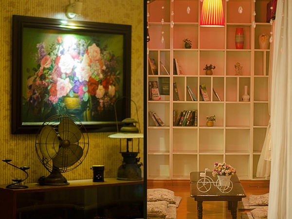 Ngoài ra, quán cũng có một góc đọc sách riêng yên tĩnh, giúp bạn có thể nghỉ ngơi thư giãn trong căn phòng sàn gỗ ngoài mé hiên.